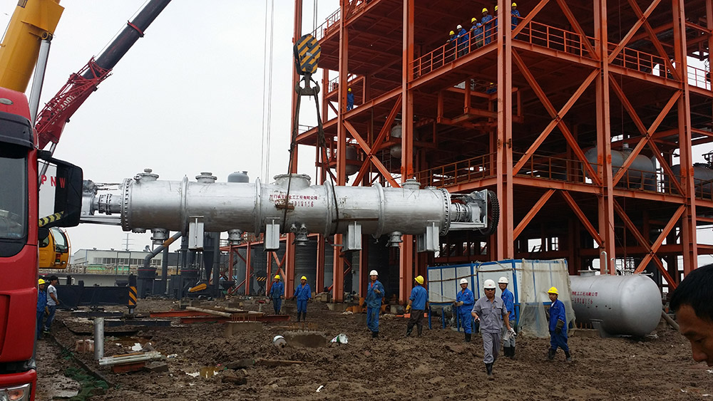 圖為真空連續(xù)干燥機(jī)施工現(xiàn)場